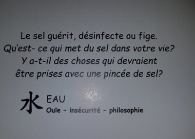 Le jeu Salamandre est inspiré des Cinq Éléments de la médecine chinoise. Chacune des cartes a été soigneusement rédigée pour éveiller une partie d’un des éléments. Elles ont vu le jour grâce à la collaboration bienveillante et experte d’une Terre, d’une Feu et d’une Eau.
